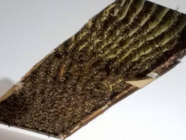 Những con ong bu kín cả cái tổ dài đến gần 2m. Anh Bobby phải mất đến 6 tiếng đồng hồ mới di chuyển được hết số ong vào trong hai cái thùng, thậm chí anh còn bị ong đốt đến chục lần, nhưng vẫn muốn di chuyển chúng đi một cách an toàn.