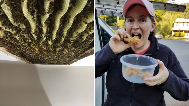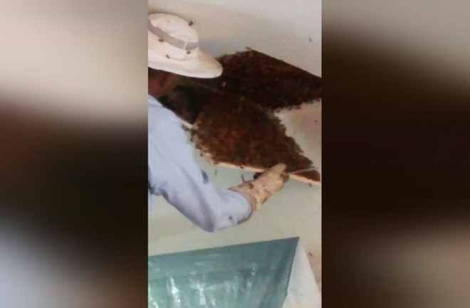 Bobby cho biết đàn ong này có khoảng 120.000 con, với khối lượng mật lên đến 60kg, chúng đã “đóng đô” trong nhà chị Lisa được khoảng 2 năm rồi.