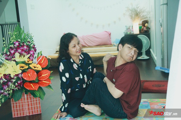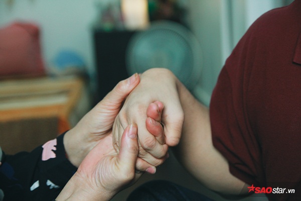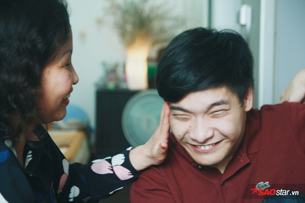Những lúc hoạt động mạnh chàng trai này thường gồng khiến cơ thể khó chịu, lúc ấy mẹ là người xoa bóp chân tay cho anh chàng.
