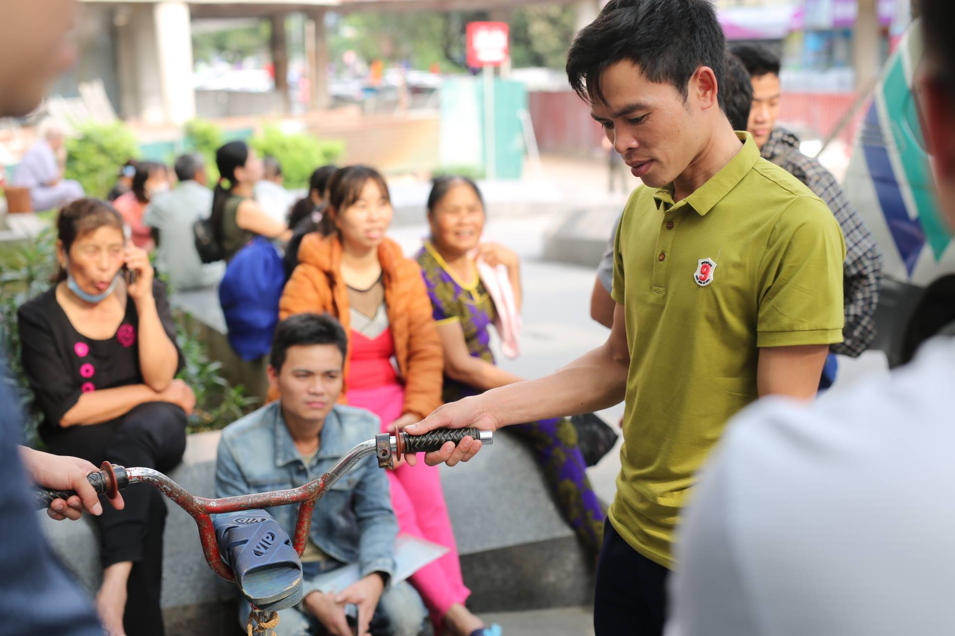 Anh Nam bên chiếc xe đạp con trai vượt hơn 100km.