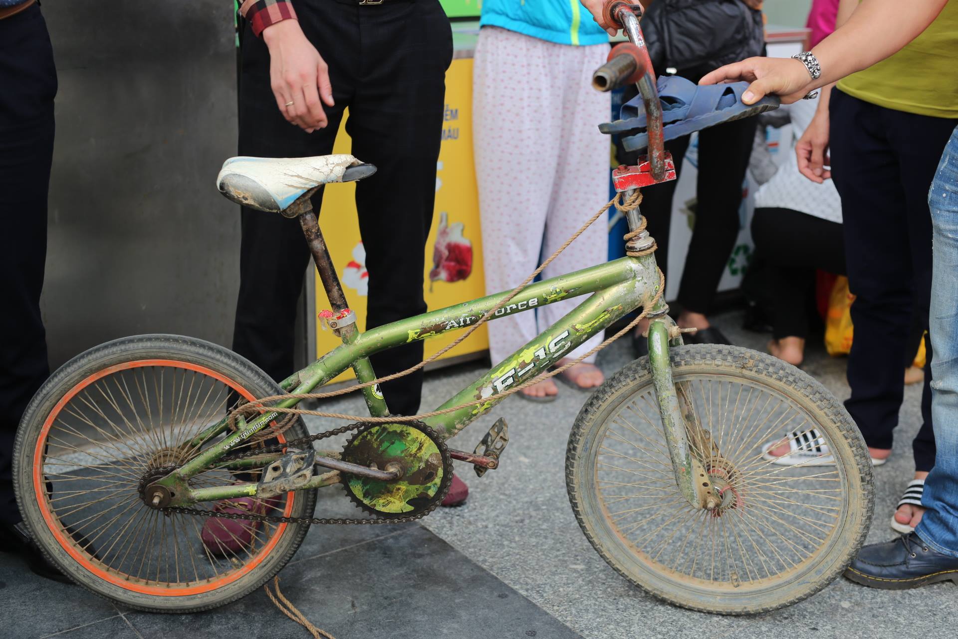 Chiếc xe đạp không phanh cùng đôi dép của bé Chiến.