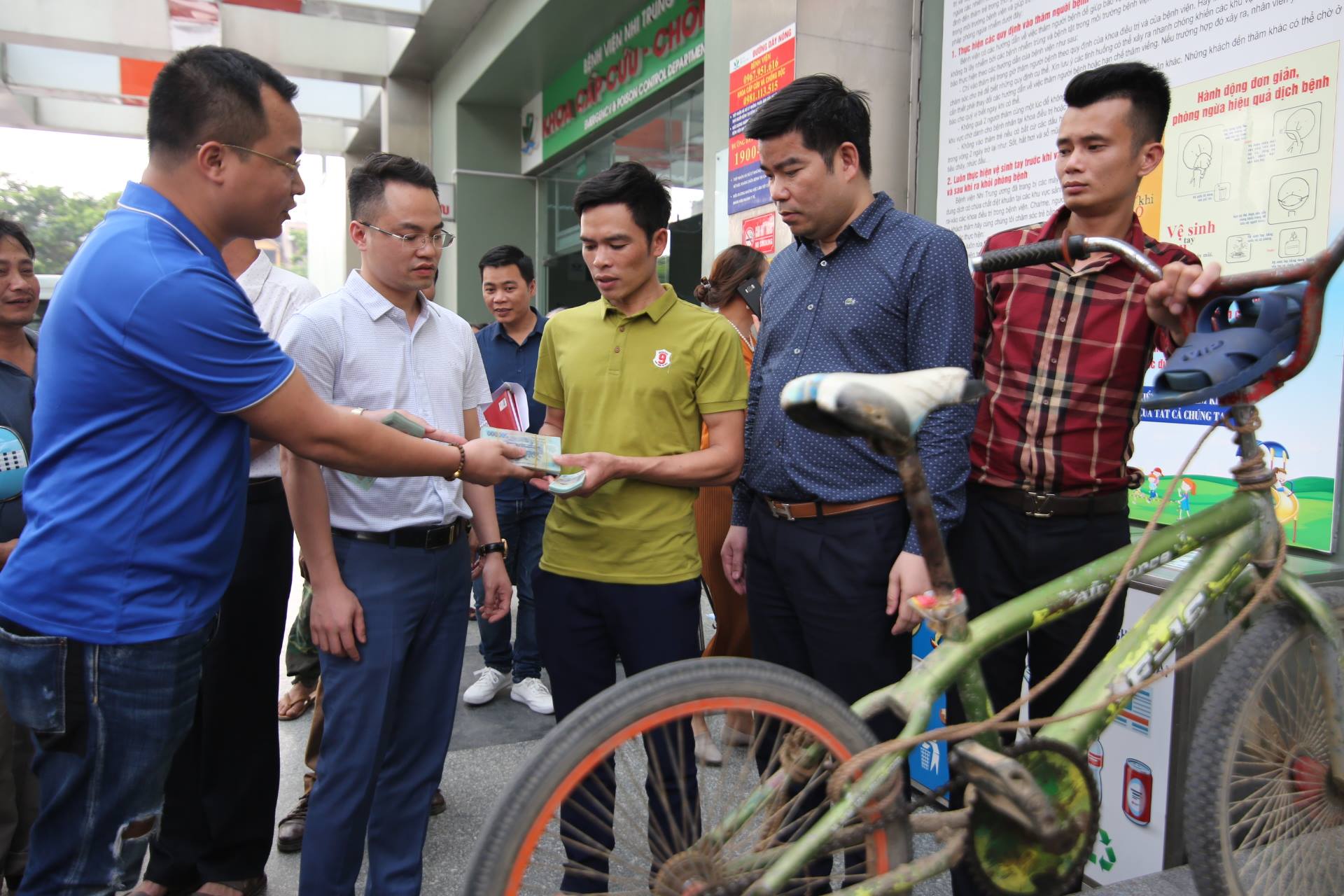 Chiều 4/4, toàn bộ số tiền đấu giá và mọi người ủng hộ đã được anh Đặng Như Quỳnh cùng mọi người trực tiếp đến Bệnh viện Nhi Trung Ương gửi lại cho anh Nam. Cầm chặt tay lái xe đạp con trai vượt quãng đường hơn 100km, anh Nam vô cùng xúc động, anh cũng cảm kích trước tấm lòng của nhiều người hảo tâm đã giúp đỡ gia đình mình.