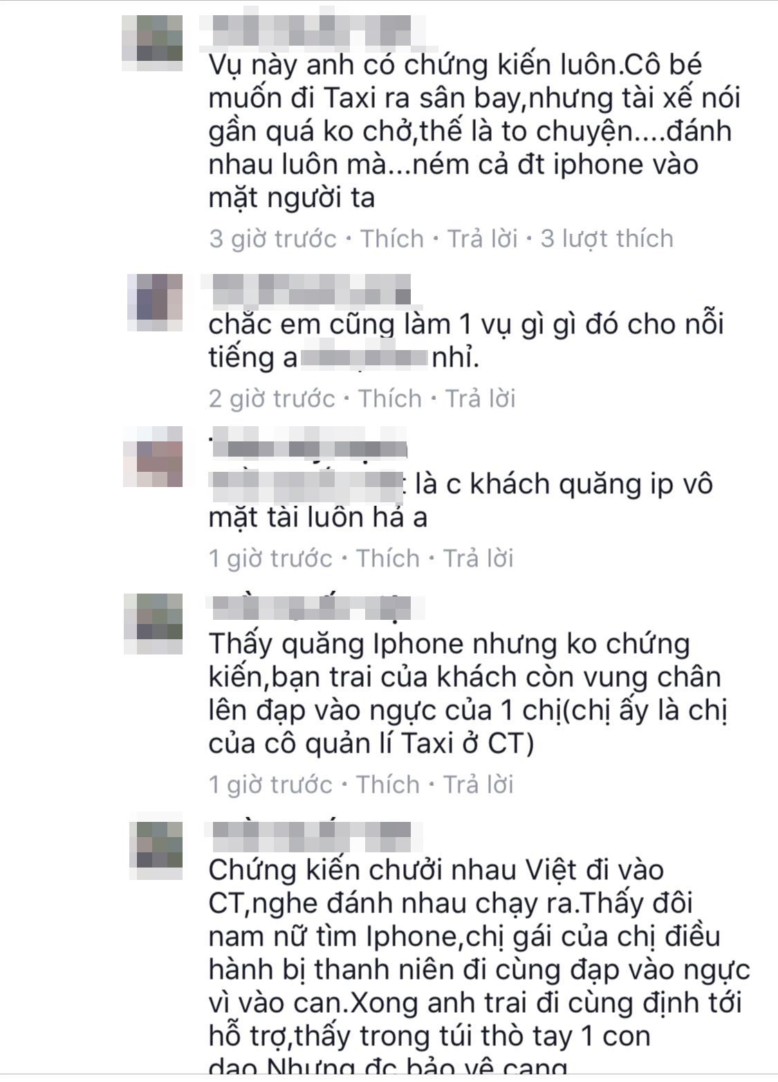 Giữa nhiều bình luận, một tài khoản tên T.Q.V được cho là đã có mặt tại nơi xảy ra cuộc cãi vã đã bất ngờ cho biết, sự viêc diễn ra sau đó hoàn toàn trái ngược với lời tố cáo của T.T. Anh cho biết, nữ người mẫu và bạn mình chẳng những ném điện thoại vào mặt tài xế taxi, chàng trai đi cùng T.T còn vung chân đá vào ngực chị gái của người điều hành xe tại CT Plaza khi cô này chạy ra ngăn cản cuộc xung đột.