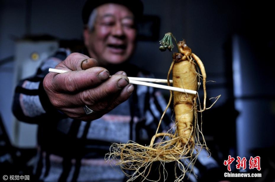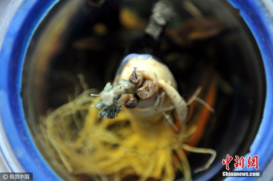 Củ sâm được người đàn ông Trung Quốc ngâm rượu trong suốt 7 năm.