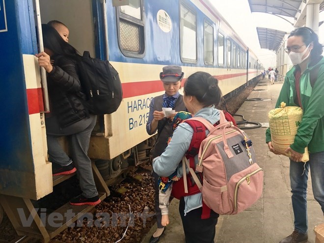 Hành khách đi tàu ở các cự ly ngắn ngày càng đông. (Ảnh: Phương Linh/Vietnam+).
