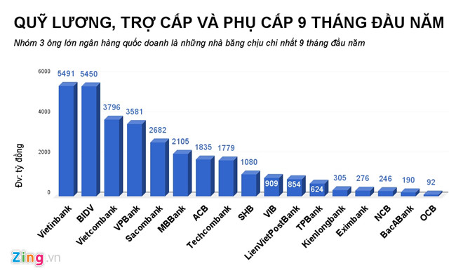 Tại tất cả ngân hàng công bố báo cáo tài chính quý III, mức thu nhập bình quân của nhân viên đều tăng so với cùng kỳ năm trước, bình quân từ 1-3 triệu đồng/tháng.