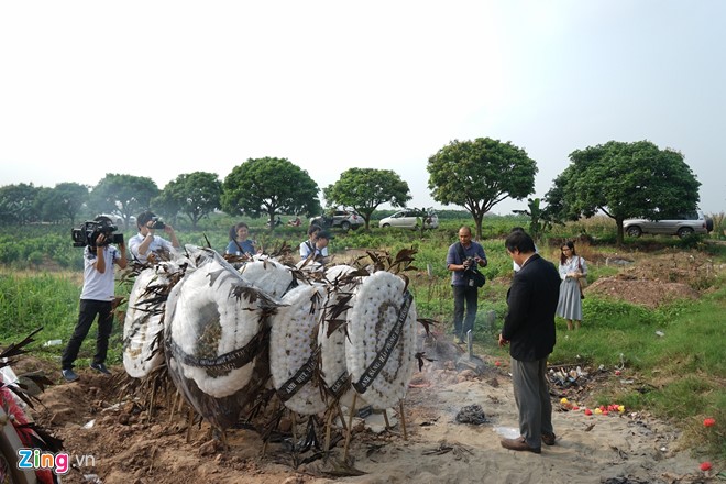 Một lúc sau, người bố lặng lẽ đốt vàng mã, hình ảnh tàn tro bay trước mộ cô bé khiến những người có mặt đều xúc động, không khí lặng yên, chùng hẳn xuống.