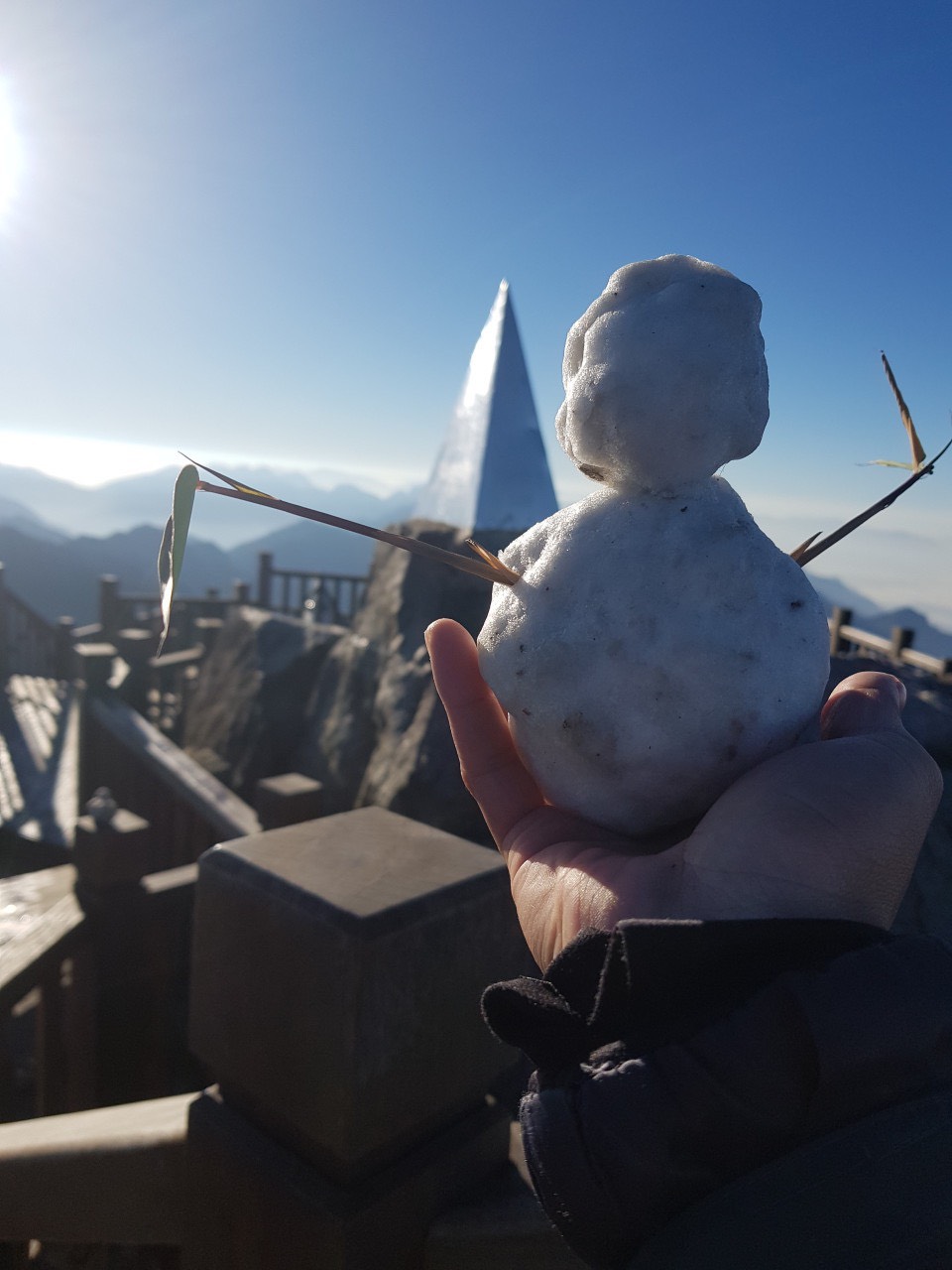 Theo ghi nhận nhiệt độ lúc hơn 7h sáng nay tại đỉnh Fansipan giảm sâu xuống còn 3 độ C tạo thành những lớp băng tuyết dày. Nhiều du khách vô cùng thích thú khi được chứng kiến hiện tượng thiên nhiên thú vị này. Nhiều người thậm chí gom được những khối băng lớn để nặn thành hình thù các con vật ngộ nghĩnh.