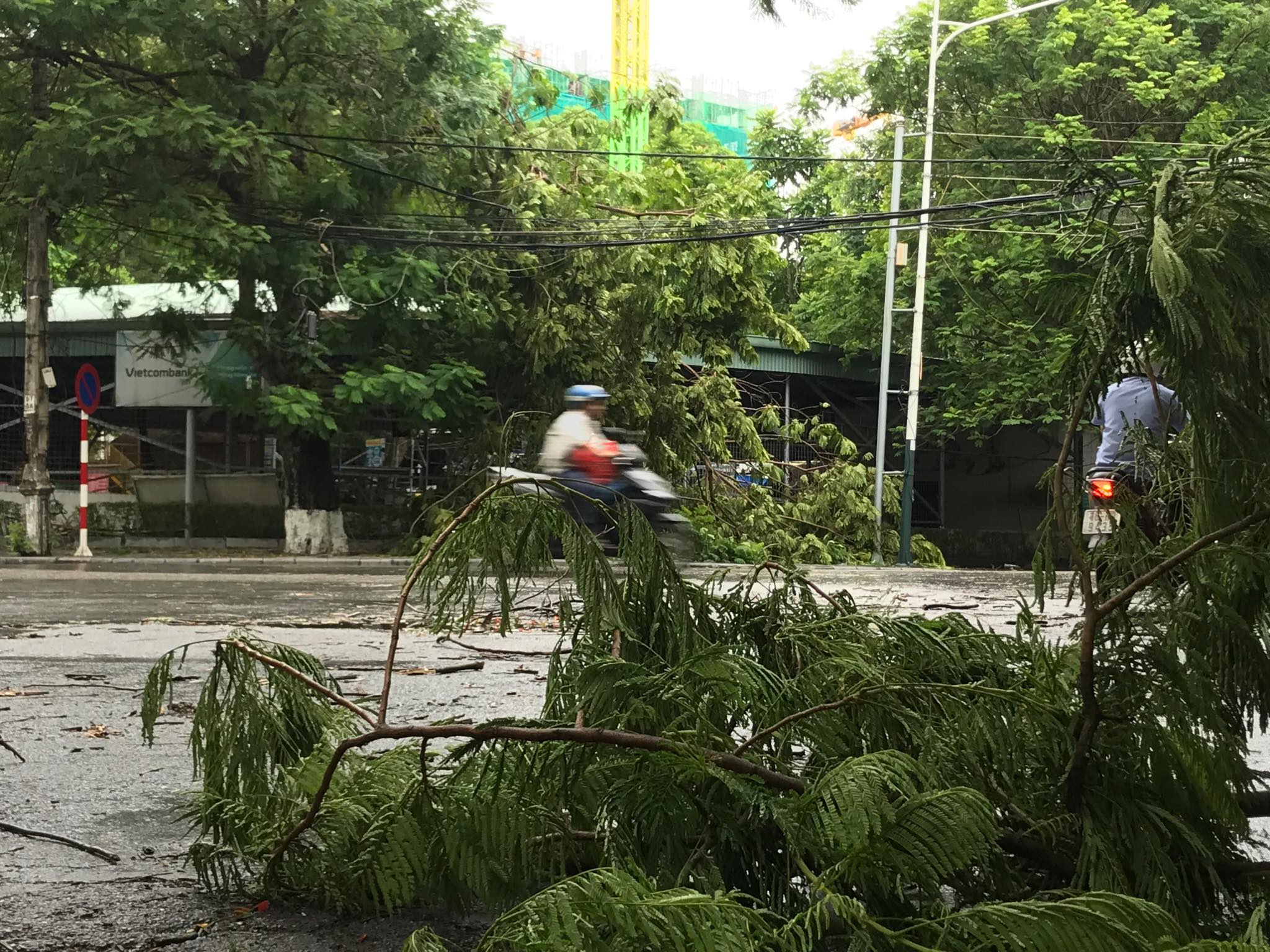 Nhiều cây xanh ở TP Hải Phòng bị gãy đổ do ảnh hưởng của bão số 2.