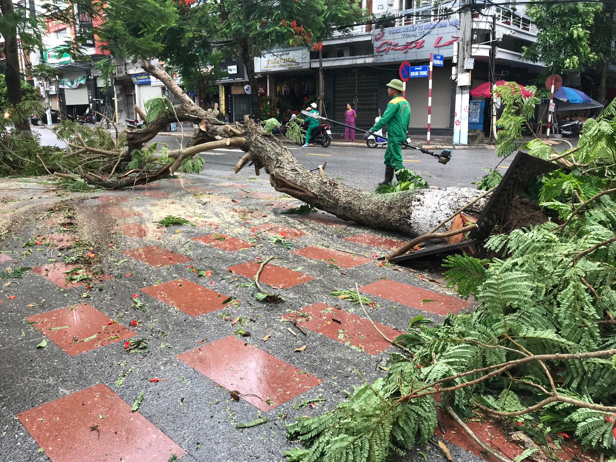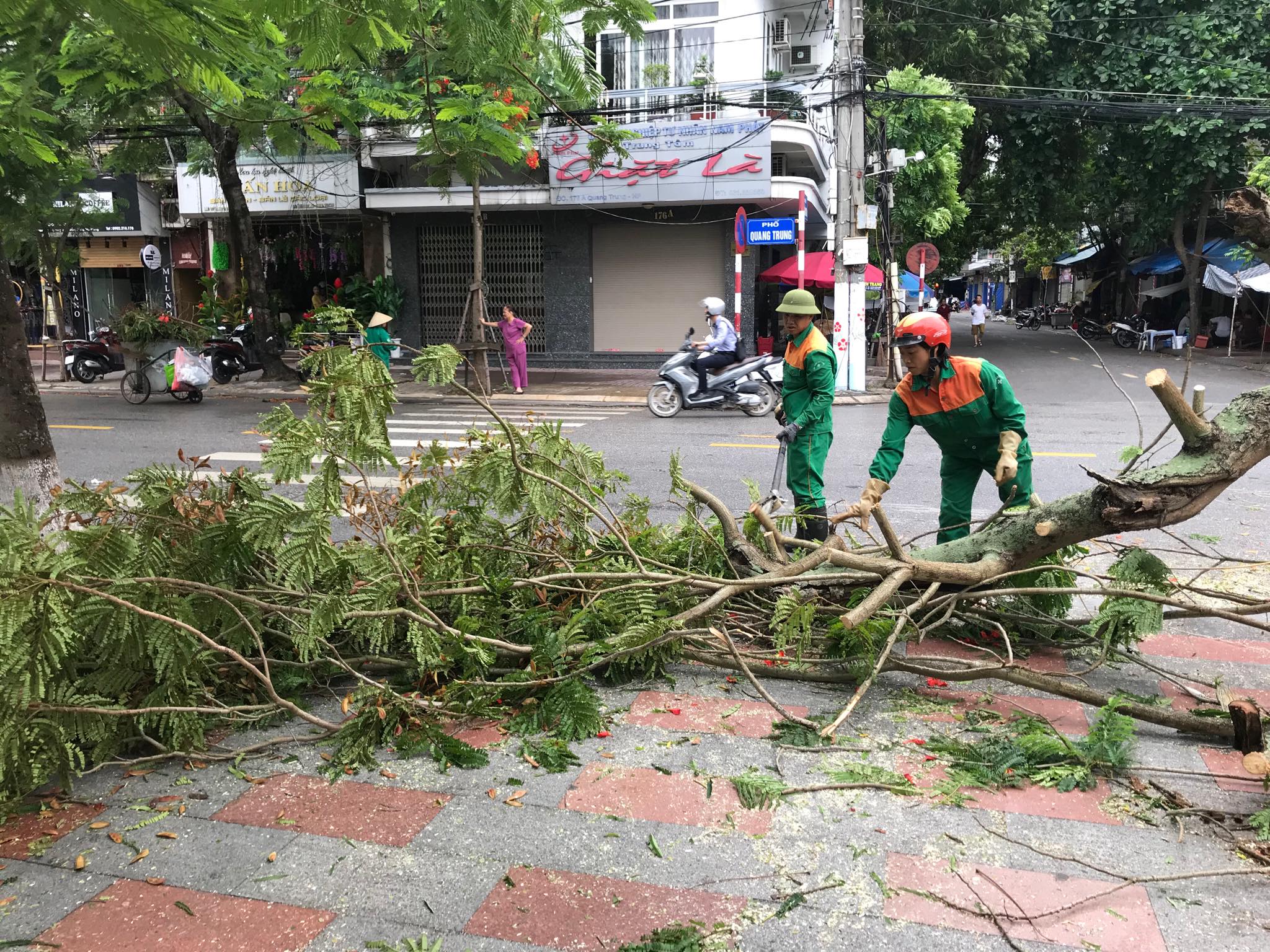 Tại Hải Phòng, do ảnh hưởng của bão số 2, nhiều cây xanh đã bị gãy đổ, bật gốc. Tại địa bàn quận Hồng Bàng nhiều công nhân môi trường đang tiến hành thu dọn những cây xanh bị gãy đổ.
