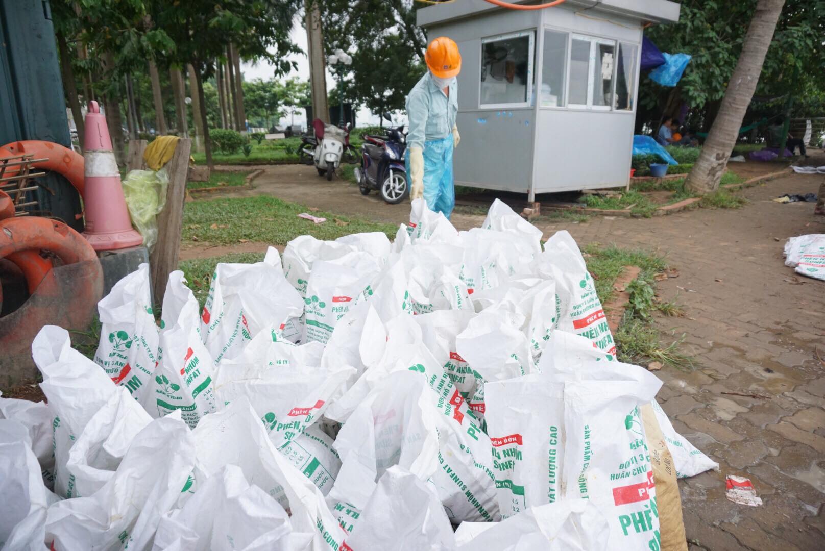 Hàng chục bao tải chứa cá chết được thu gom lên bờ sau đó sẽ có xe chở rác mang đi nơi khác tiêu huỷ, đảm bảo vệ sinh môi trường.