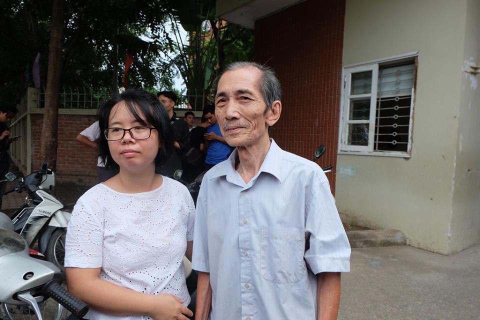 Chị Dương (bên trái) đứng cạnh ông Toại (bên phải).