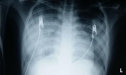 Các xét nghiệm ban đầu cho thấy tình trạng viêm phổi của bé nặng với XQ ngực thâm nhiễm lan tỏa 2 phế trường. Nguồn ảnh: Công an Nhân dân.