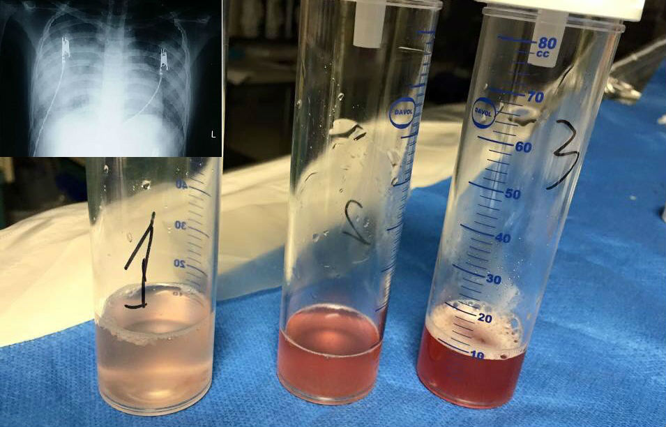 Khi được đưa đến BV Nhi Đồng 2, các xét nghiệm ban đầu cho thấy tình trạng viêm phổi nặng, chụp x-quang ngực thâm nhiễm lan tỏa 2 phế trường nhưng các xét nghiệm nhiễm trùng không tăng nhiều.