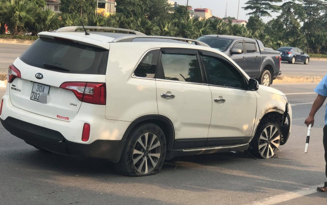 Theo quan sát, toàn bộ bánh trước và sau bên phụ cả 2 lốp ô tô 30A-703… nổ, vò nát lốp đến tận vành. Chỉ huy Công an quận Long Biên thông tin thêm, tại thời điểm có mặt cảnh sát xác định 1 người đi xe máy bị thương nhẹ, rời khỏi hiện trường ngày sau đó, và 1 người phụ nữ bị thương.