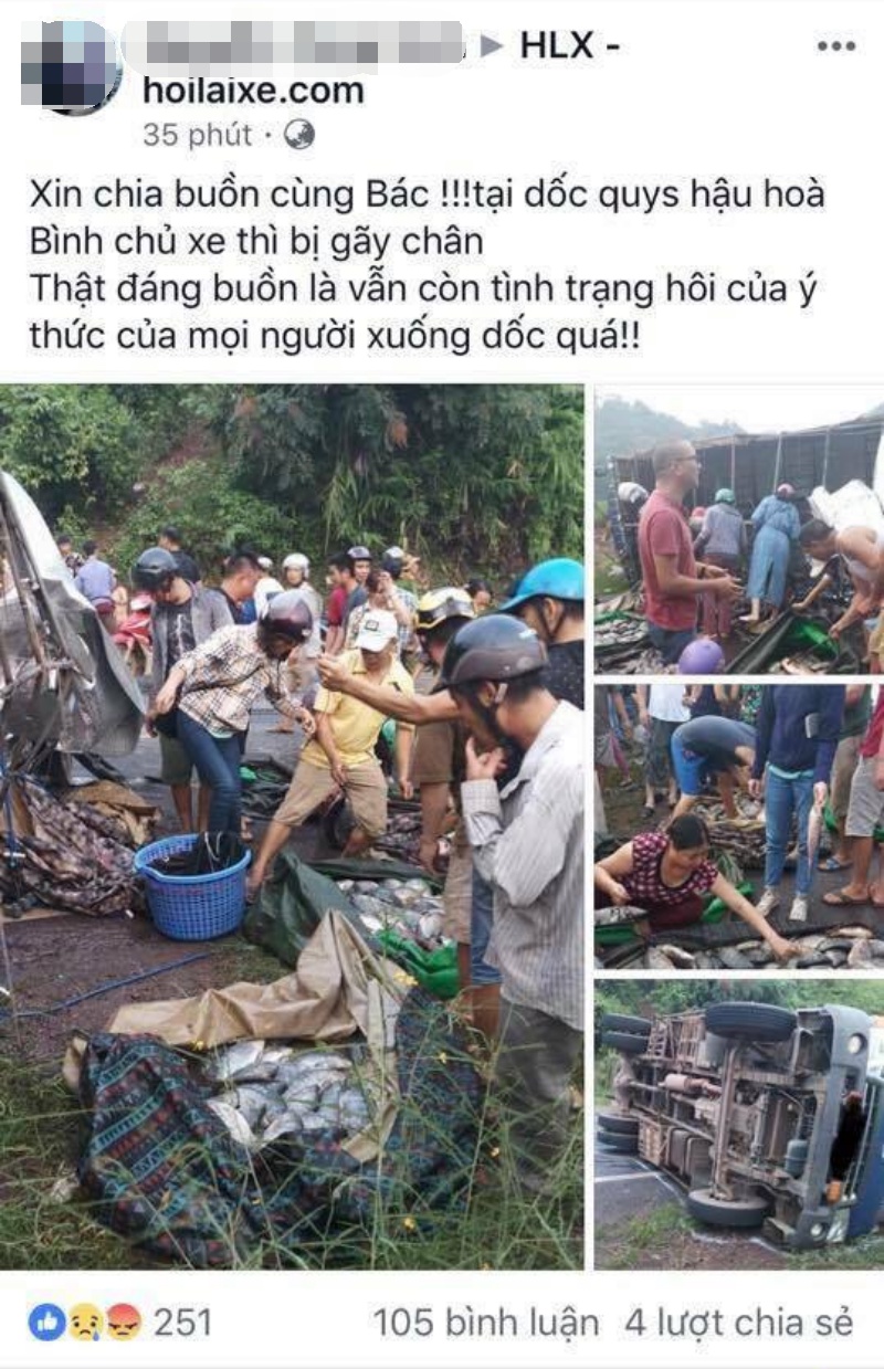 Về thông tin lan truyền trên mạng cho rằng người dân khi thấy chiếc xe tải gặp nạn thì lao vào “hôi cá”, ông Liêm khẳng định: “Không có chuyện người dân hôi cá. Lúc chiếc xe tải gặp nạn, cá chở trên xe bị văng hết ra đường. Thấy vậy, bà con nhân dân sống xung quanh hiện trường và một số người đi đường đã đến giúp tài xế gom cá lại một chỗ. Sau đó, chủ hàng bảo lật xe như thế thôi thì vớt vát được tý nào thì hay tý đấy, rồi bán rẻ cá cho người dân. Người dân thấy vậy cũng mua giúp, mua ủng hộ chứ không có chuyện hôi của”, ông Liêm chia sẻ.