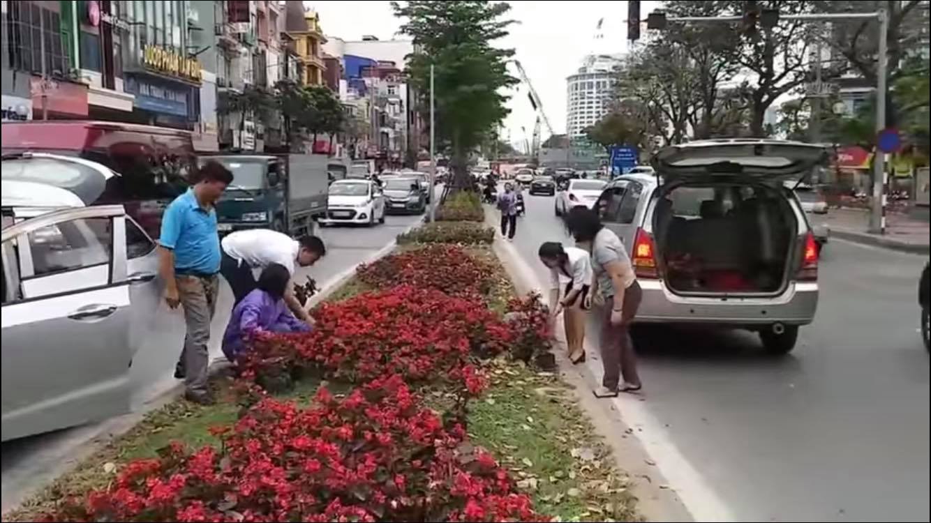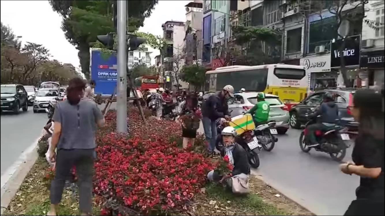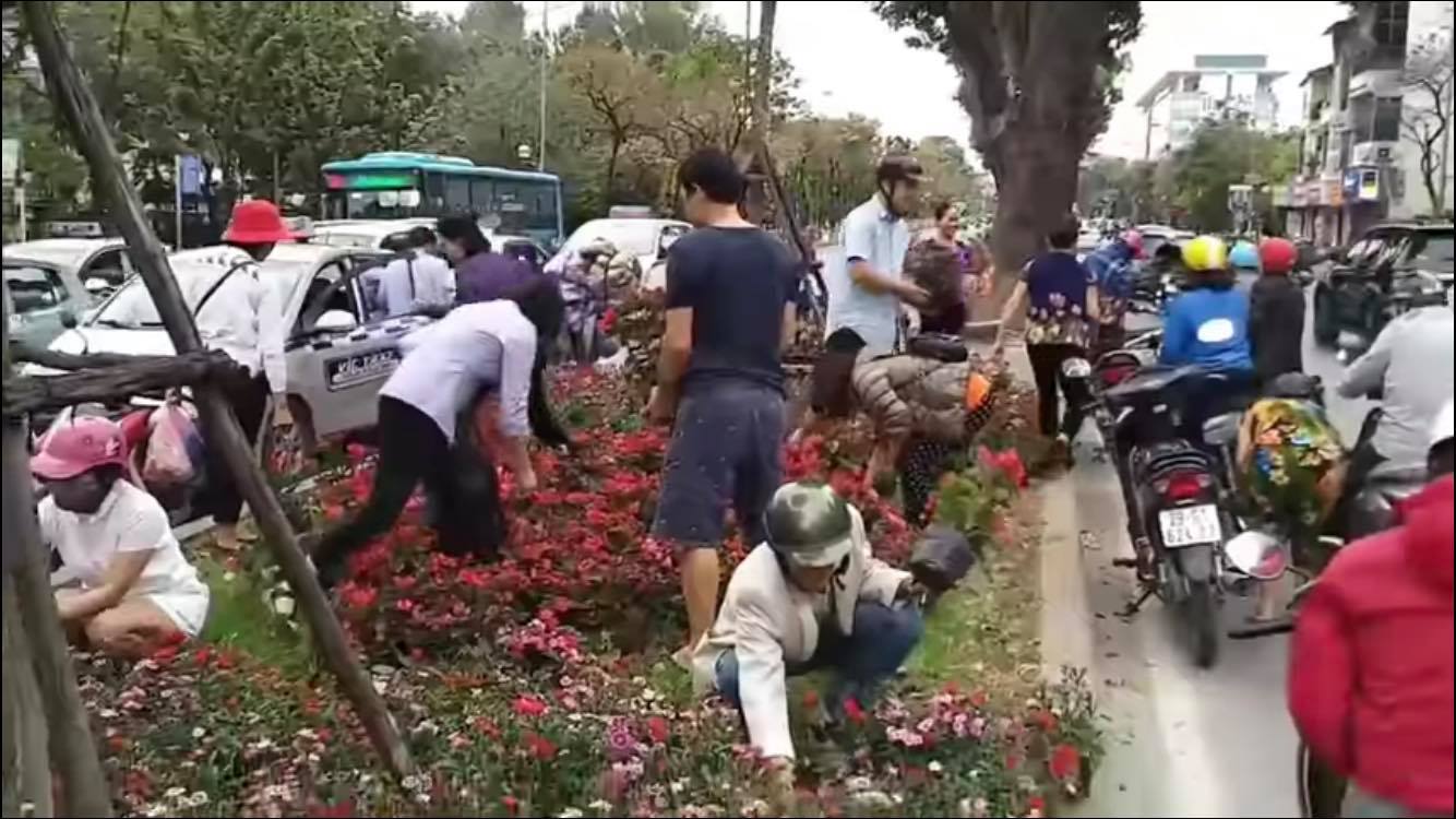 Trưa ngày 6/3, trên mạng xã hội xôn xao đoạn clip ghi lại hình ảnh nhiều người dân, trong đó có cả người đi ô tô ngang nhiên dừng xe giữa đường Kim Mã để lấy hoa trang trí trong dịp hội nghị thượng đỉnh Mỹ - Triều diễn ra trong hai ngày 27-27/2 vừa qua.