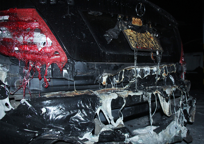 Ôtô Mercedes bị cháy một phần nhưng cũng chưa được chủ đến nhận.