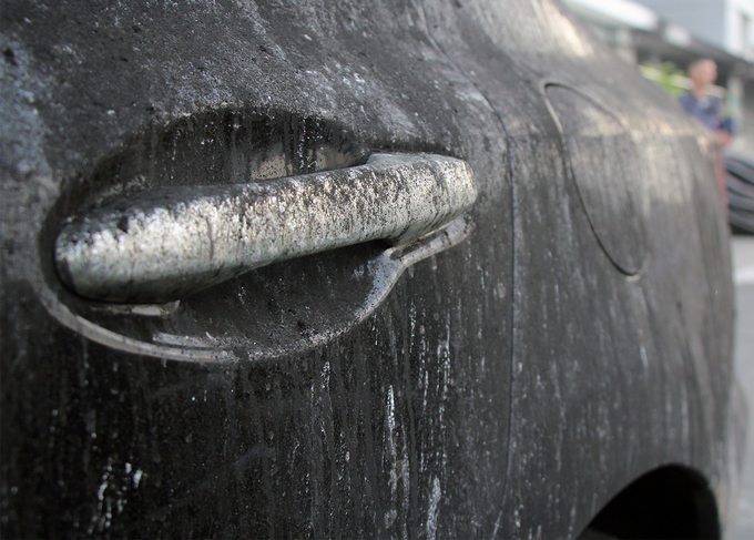 Những ôtô dù không bị cháy, vẫn hoạt động được bị phủ lớp muội than đen kịt.