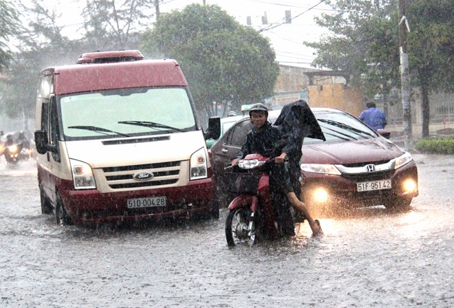 Mưa lớn tại nhiều quận huyện ở TP.HCM. Ảnh: Lê Trai.