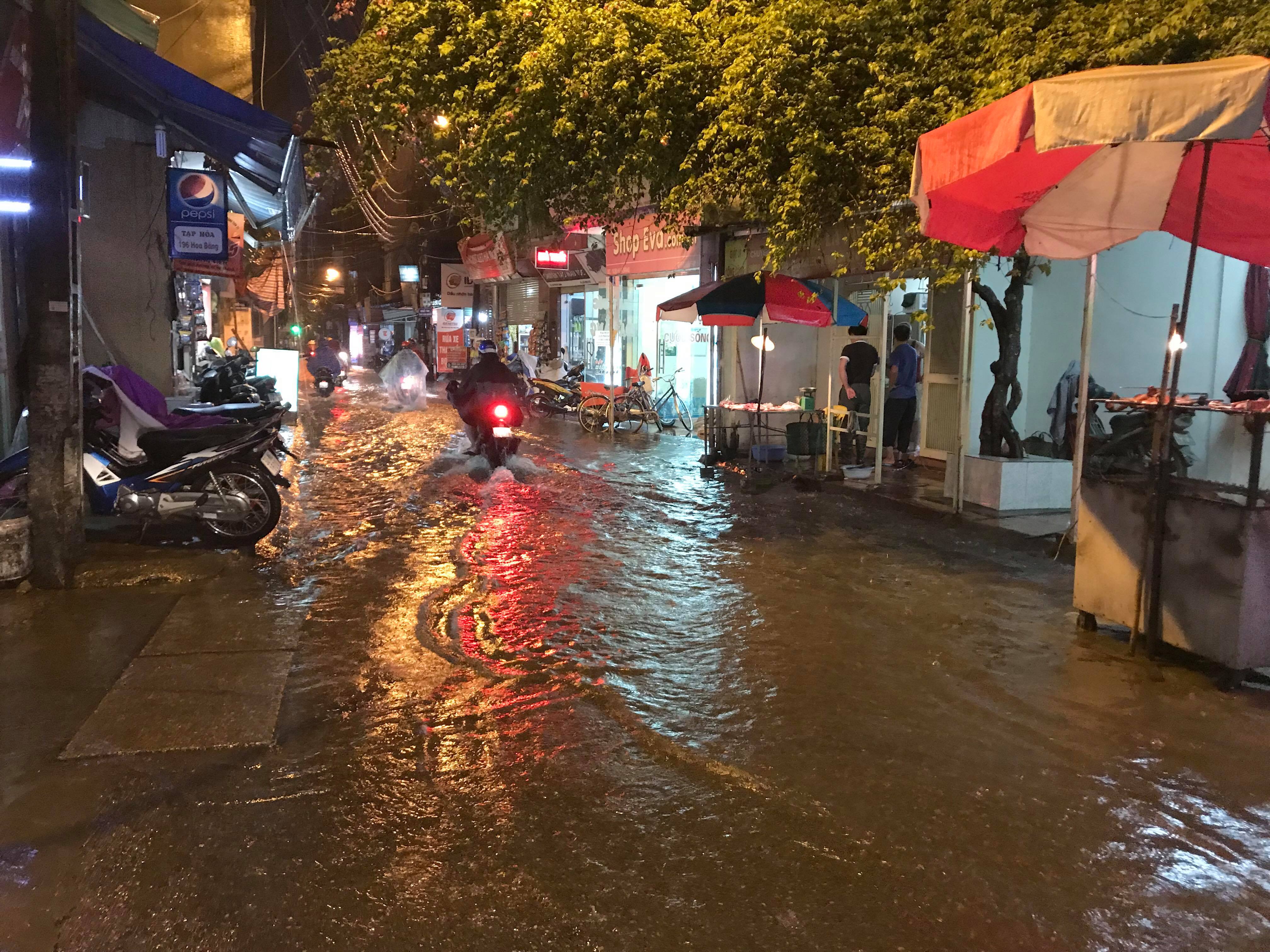 Nước mưa bắt đầu rút dần tại đường Nguyễn Trãi.