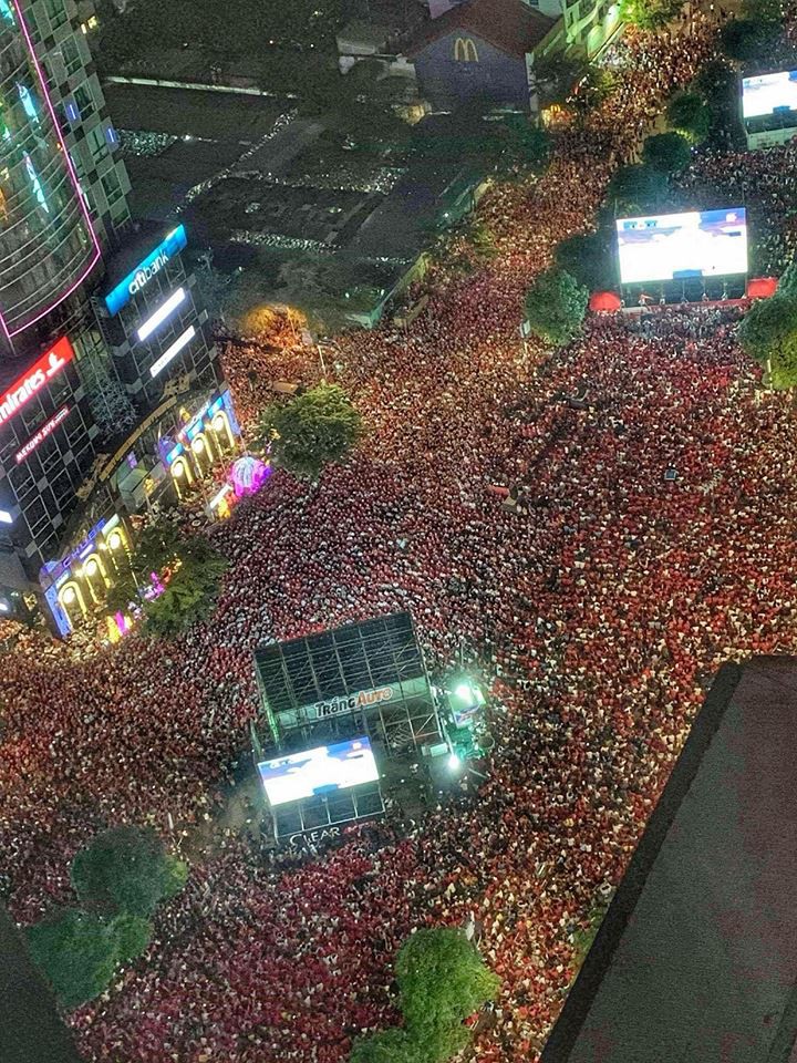 Dòng người TP.HCM đổ về con đường để chứng kiến trận đấu lịch sử. Ảnh: FB Thanh Tuyền.