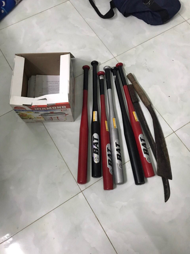 Qua khám xét, công an thu giữ nhiều mã tấu, công cụ hỗ trợ.