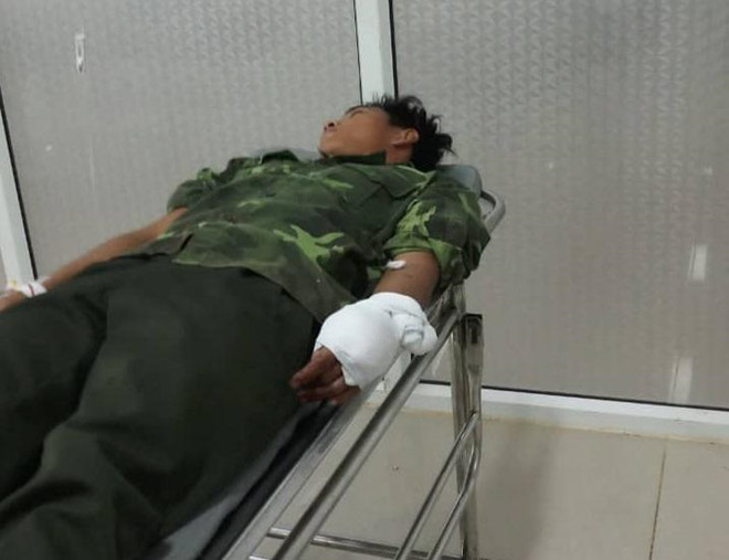 Một kiểm lâm bị nhóm lâm tặc dùng hung khí chém đứt gân tay. Ảnh: Thanh Niên