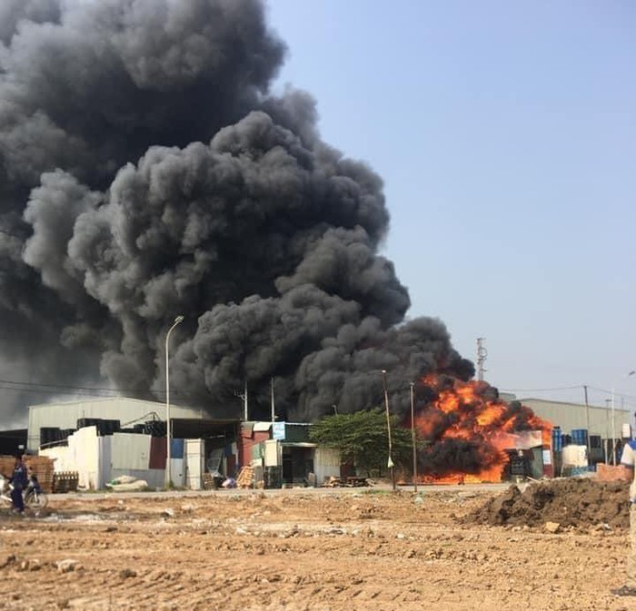 Khu vực xảy ra vụ cháy có nhiều nguyên vật liệu dễ cháy như nhựa, cao su, giấy,… kèm gió lớn khiến công tác dập lửa gặp nhiều khó khăn.