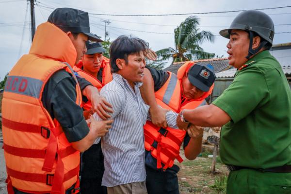 Người đàn ông bị cưỡng chế di dời đến nơi trú bão, người này cho biết lý do không đi vì sợ mất đồ đạc trong nhà. Ảnh: VNE