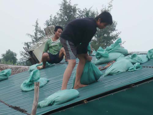 Đối với việc chằng chống nhà cửa chống bão, người miền Trung rất có kinh nghiệm. Ví dụ như, để giảm thiểu tốc mái khi gió giật mạnh, họ sẽ dùng những bao cát đóng lỏng có trọng lượng khoảng 15-20kg, nối với nhau bằng dây và vắt qua mái nhà sao cho các bao cát nằm sát trên đầu tấm lợp. Khoảng cách giữa các bao cát khoảng 1,5m.