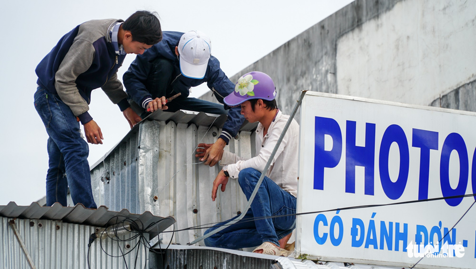 Đa số những ngôi nhà có kết cấu khá sơ sài, do thiếu sự hiểu biết về cách phòng chống bão khiến cho việc chằng chống nhà cửa khá lỏng lẻo và thiếu tính an toàn. Ảnh: Tuổi Trẻ