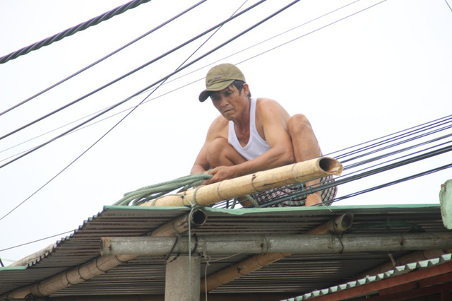 Họ dùng những đoạn dây thép mỏng để gia cố mái tôn tránh cho gió giật tốc mái, dùng gạch để chặn lên mái nhà lợp bằng lá, dùng lưới đánh cá để chằng chống nhà tránh bão … đó là cách mà một số hộ dân tại miền Tây đang áp dụng để giữ gìn nhà cửa trước khi cơn bão Tembin đến.