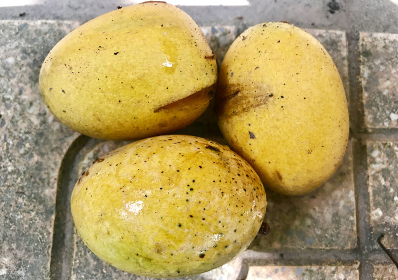 Những quả xoài chín thơm phức rụng đầy hè phố của khu đô thị này.