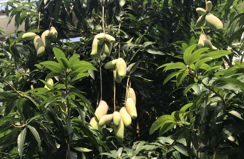 Ở khu đô thị Tây Nam Linh Đàm, những cây xoài cũng cho quả sai trĩu cành.