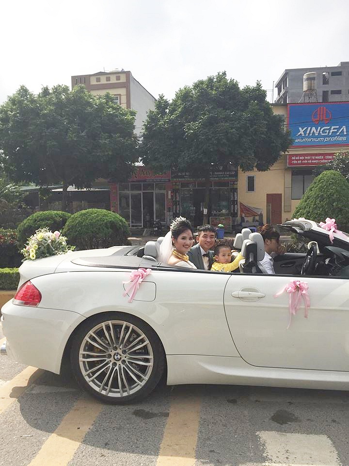 Cuối cùng, cô dâu chú rể cho cậu nhóc cùng lên xe hoa.