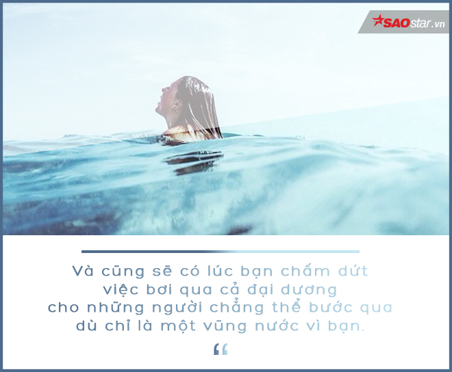 1. Và cũng sẽ có lúc bạn chấm dứt việc bơi qua cả đại dương cho những người chẳng thể bước qua dù chỉ là một vũng nước vì bạn.