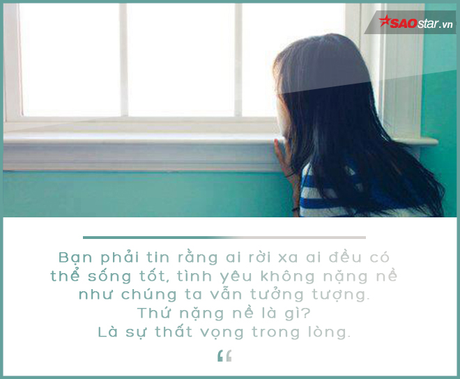 2. Bạn phải tin rằng ai rời xa ai đều có thể sống tốt, tình yêu không nặng nề như chúng ta vẫn tưởng tượng. Thứ nặng nề là gì? Là sự thất vọng trong lòng.