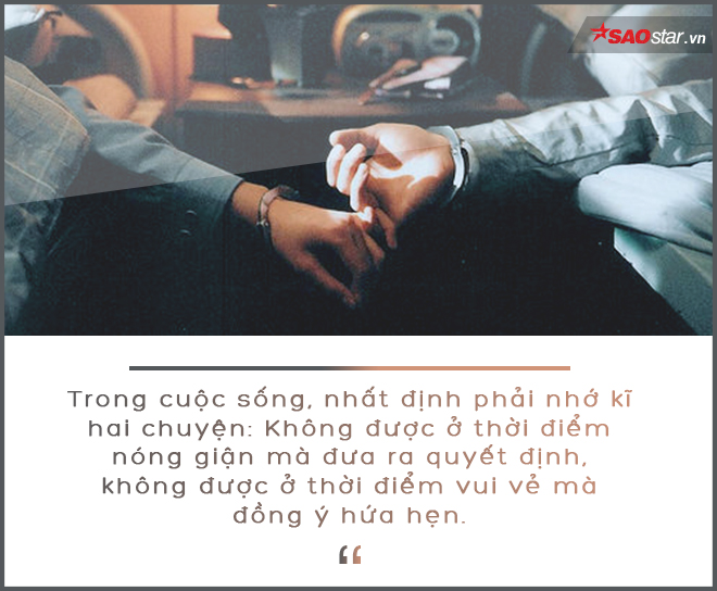 6. Trong cuộc sống, nhất định phải nhớ kĩ hai chuyện: Không được ở thời điểm nóng giận mà đưa ra quyết định, không được ở thời điểm vui vẻ mà đồng ý hứa hẹn.