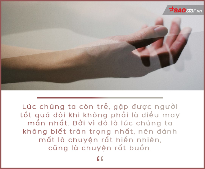 Vì tuổi trẻ rất nhiều điều nông nổi, nên đánh rơi người mình nên trân quý âu cũng là chuyện bình thường. Chỉ mong tuổi trẻ đừng gặp người quá tốt, để lỡ mất đi cả đời không phải ân hận.