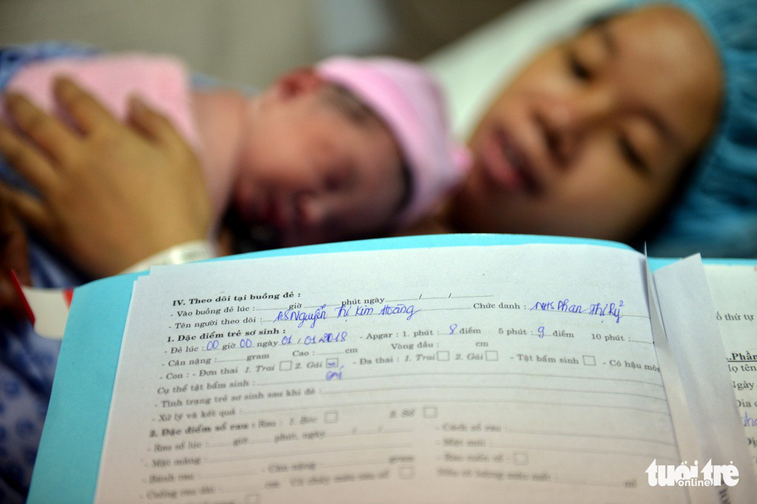 Đúng 0h ngày 1-1-2018 một bé gái nặng 3,2kg dài 51cm đã chào đời. Chị Lê Thị Kim Trang (24 tuổi, Q.12) sản phụ đầu tiên hạ sinh trong thời khách chuyển giao giữa năm cũ và năm mới cho biết gia đình rất vui mừng vì em bé sinh ra khỏe mạnh và rất đáng yêu.
