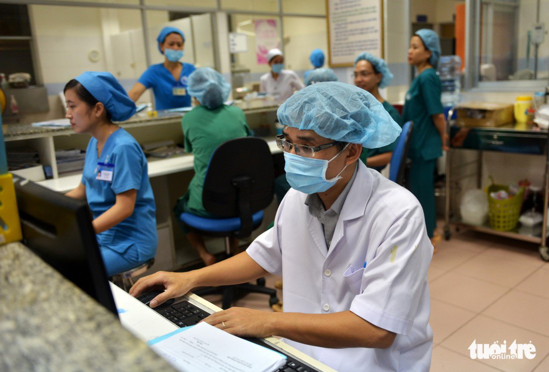 Các bác sĩ chăm sóc em bé được sinh ra vào thời khắc giao thừa - Ảnh: DUYÊN PHAN