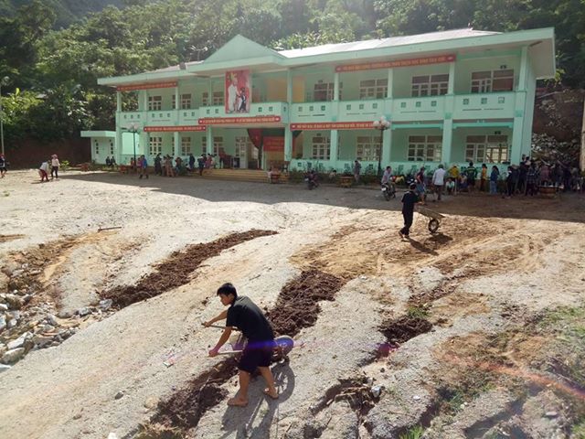 Ngay sau khi lũ rút, nhà trường đã huy động toàn bộ giáo viên cùng với sự giúp đỡ của bộ đội biên phòng và phụ huynh học sinh dọn dẹp trường lớp. Tuy nhiên, đến nay mọi thứ vẫn còn ngổn ngang. Nhà trường phân công nhau trực 24/24. Vì mưa lũ nên thầy cô tranh thủ ăn bánh mì và xin nước lọc của người dân để nạp năng lượng rồi tiếp tục dọn dẹp. Ai cũng hối hả, mong muốn mau chóng dọn xong trường để học sinh kịp đón lễ khai giảng.