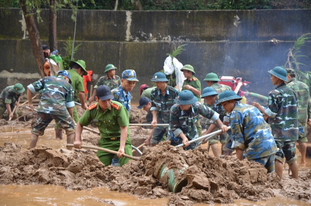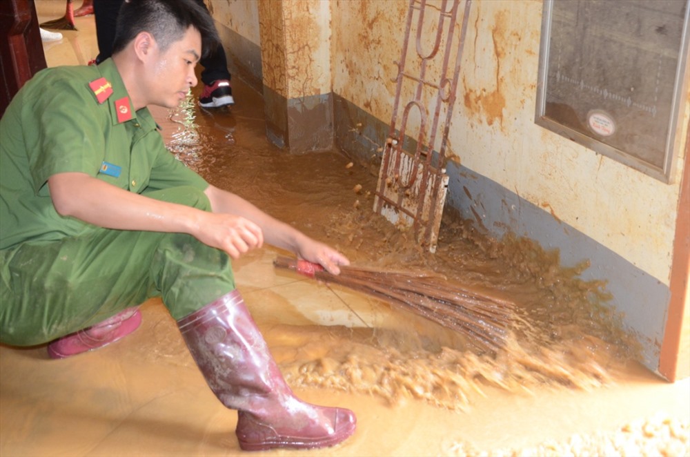 Ghi nhận của PV báo Dân trí cũng cho hay, tại huyện Cẩm Thủy, sau khi lũ rút, lực lượng chức năng như bộ đội, công an, đoàn viên thanh niên đã triển khai công tác hỗ trợ các nhà trường dọn dẹp bùn đất, khắc phục hậu quả mưa lũ.