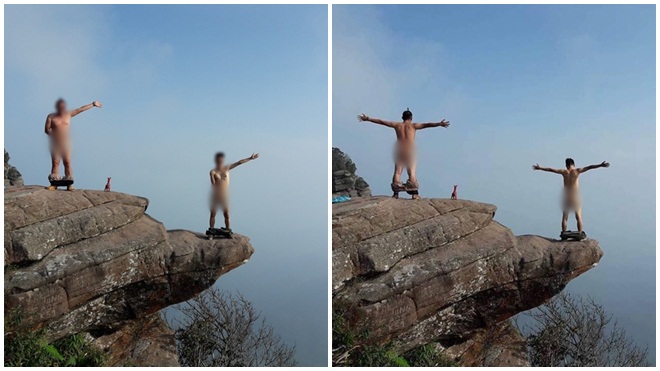 Cảnh tượng hai chàng trai tạo vô tư cởi quần áo, tạo dáng trên đỉnh Pha Luông (Mộc Châu, Sơn La) trong bộ dạng không mảnh vải che thân được đăng tải trên các diễn đàn mạng đã khiến nhiều người phải lắc đầu ngán ngẩm.