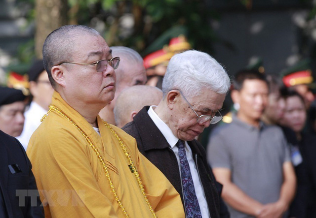 Những nhà sư được mời đến làm nghi lễ nhà Phật tại Lễ tang không ngừng đọc kinh. (Nguồn: TTXVN)