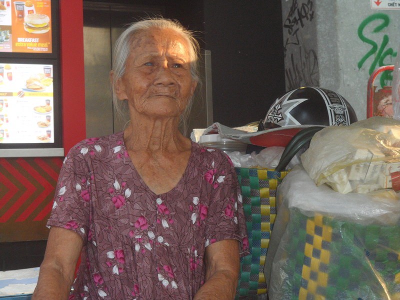 Cụ Ba nói được 4 ngoại ngữ, bán nước ở góc đường góc đường Trần Hưng Đạo và Phạm Ngũ Lão (quận 1) luôn nhiệt tình giúp đỡ, chỉ đường giúp người nước ngoài. Ảnh: NGUYỄN TRÀ