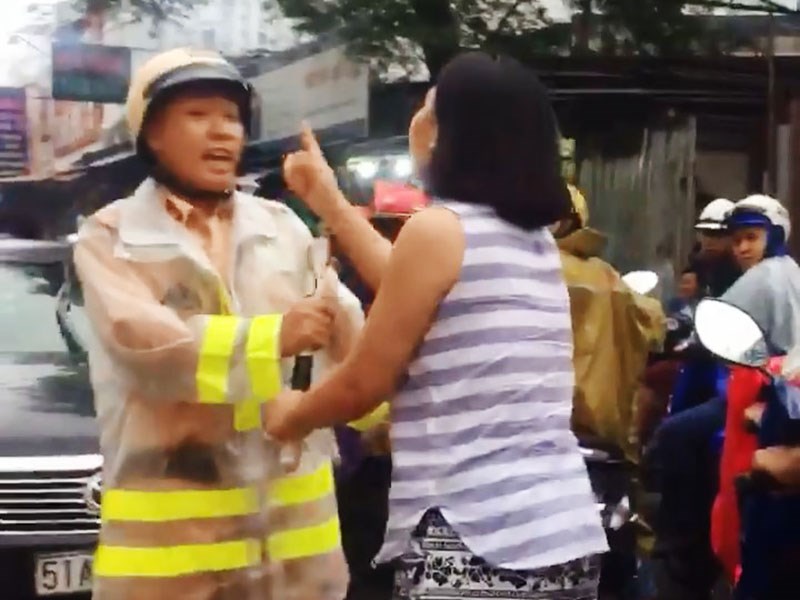 Khi tranh cãi về vi phạm, người phụ nữ này gọi điện thoại cho một người khác và đề nghị cảnh sát nghe máy tuy nhiên chiến sỹ cảnh sát không thực hiện theo. Sau đó, phụ nữ này có những lời lẽ thóa mạ, chửi bới nam cảnh sát trước sự chứng kiến của nhiều người. Trong clip, người phụ nữ này còn huênh hoang tự nhận mình là báo.