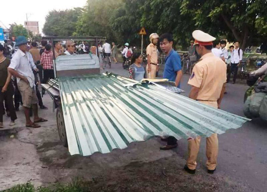 Vào thời điểm trên, một người đàn ông trung niên chạy xe ba gác có chở theo một số tấm tôn không được bọc bảo vệ ở phần sắc nhọn. Khi di chuyển đến khu vực thuộc xóm 2, xã Yên Lộc, chiếc xe dừng lại để quay đầu.