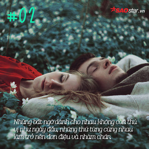 Những bất ngờ dành cho nhau không còn thú vị như ngày đầu, những thứ từng cùng nhau làm trở nên đơn điệu và nhàm chán, những món quà, tin nhắn người ấy dành tặng không còn khiến bạn vui như trước, và những điều lãng mạn cứ thưa thớt dần trong mối quan hệ. Đó chính là lúc tình yêu của bạn đã có vấn đề. Hai người yêu nhau thì mới tạo nên chất xúc tác sản sinh ra sự lãng mạn, là một hương vị không thể thiếu trong tình yêu, làm cho mối quan hệ luôn sống động và đẹp đẽ. Một khi đã để mất đi điều đó, hoặc là bạn cần nhanh chóng “hâm nóng” lại tình yêu của mình, hoặc là đổ vỡ.